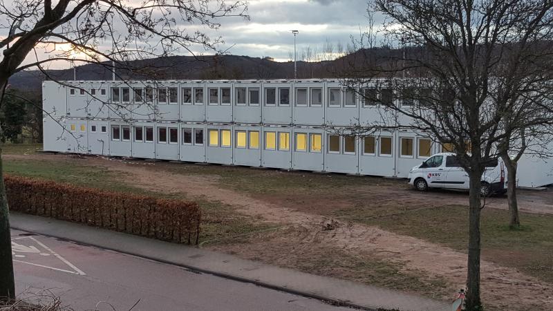 Die Klassen 2c, 2b, 3d, 2a, 1c, 1b haben ab Donnerstag, 21.02.2019 Unterricht im Container.